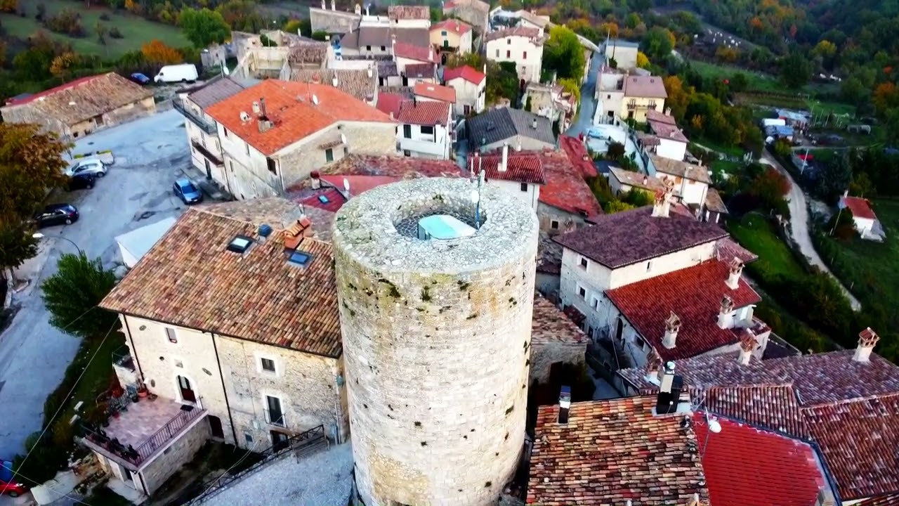 La torre è a pianta circolare, impostata su un banco roccioso. Veniva probabilmente adibito a magazzino e cisterna ed era suddiviso in altezza in due vani. Il piano superiore, destinato al corpo di guardia, è a pianta ottagonale; si accedeva ad esso tramite una scala lignea, orientata a sud verso l'alveo del Fucino, sormontata da un architrave in pietra; al di sotto rimane una mensola che sosteneva il ponte di legno che collegava la torre al battiponte, oggi scomparso. Non si esclude l'ipotesi che un tempo, la torre, fosse più alta e munita di merlatura.